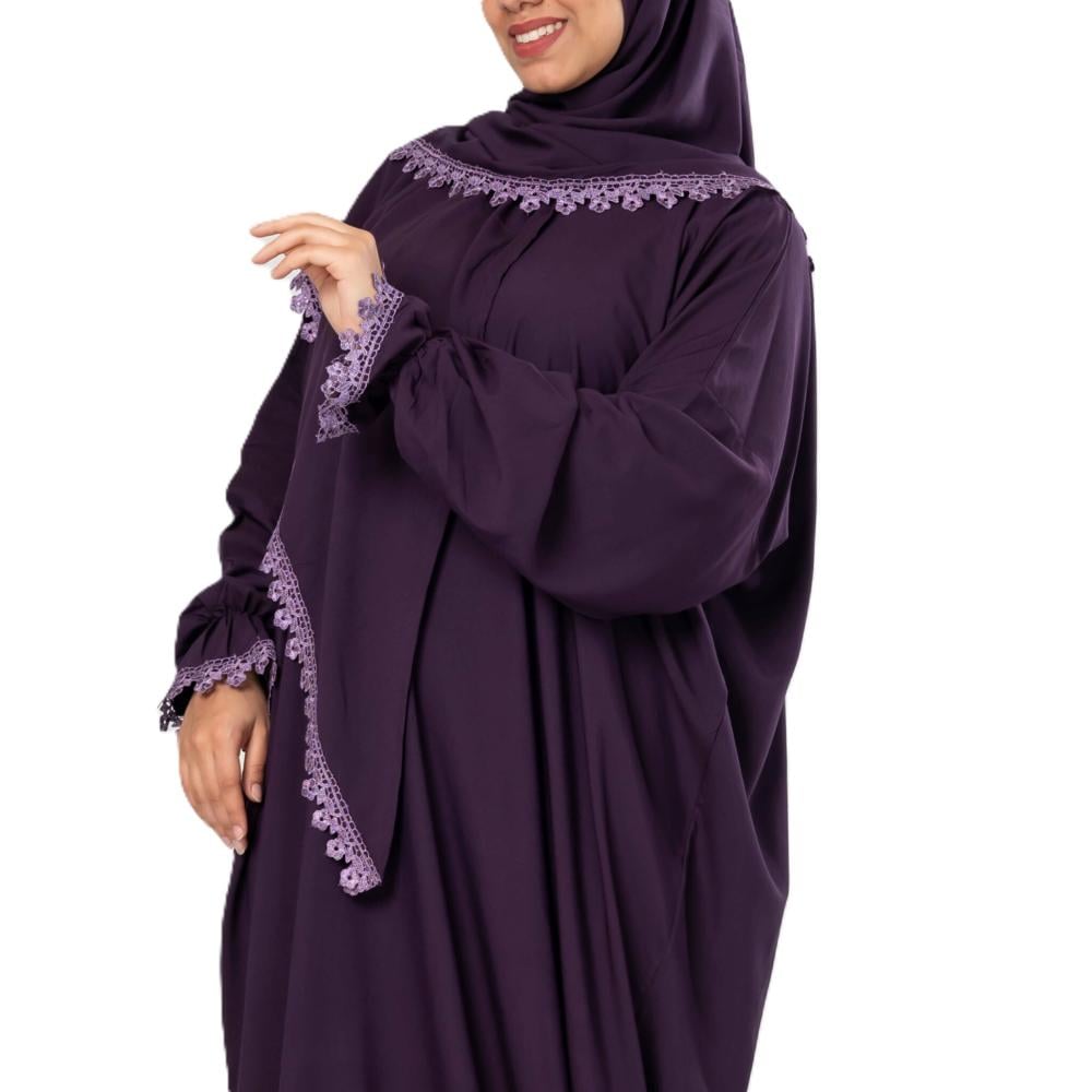 طقم صلاة مع طرحة مطرزة -بنفسجي غامق